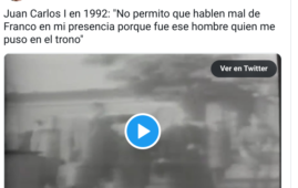 (Vídeo) Juan Carlos I en 1992: «No permito que hablen mal de Franco en mi presencia porque fue ese hombre quien me puso en el trono»En el vídeo que encabeza esta.