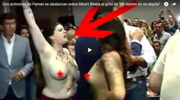 El líder de Ciudadanos, Albert Rivera, se ha visto sorprendido este sábado por dos activistas de Femen que le han increpado al grito de «mi cuerpo no se vende, mi vientre no se alquila» a su llegada a un acto de la formación naranja en Málaga.