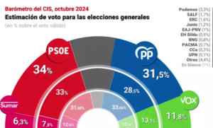 El barómetro de octubre del Centro de Investigaciones Sociológicas (CIS) sigue dando como ganador al PSOE en...