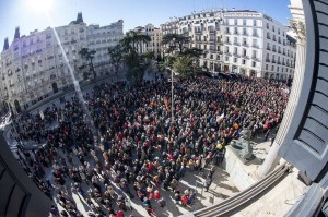 Coreando lemas como «¡Qué vergüenza, qué vergüenza, nos roban las pensiones, sanidad y dependencia!», «¡Pueblo de Madrid,...