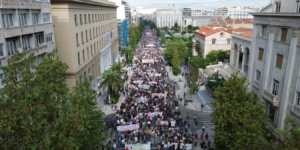 Miles de manifestantes convocados por partidos, sindicatos y organizaciones de izquierdas, han salido este sábado a la...