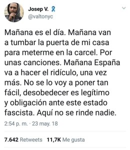 El rapero Valtonyc, condenado por las letras de sus canciones, ha huido fuera del estado español para evitar...