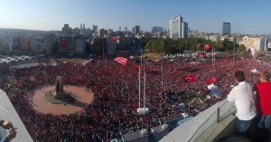 Una marea de banderas rojas cubría hoy la céntrica plaza de Taksim en Estambul, con decenas de...