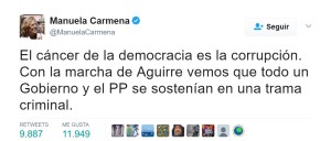 La alcaldesa de Madrid, Manuela Carmena, ha considerado hoy que la portavoz del PP, Esperanza Aguirre, debería...