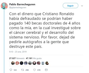 «Con el dinero que Cristiano Ronaldo había defraudado se podrían haber pagado 140 becas doctorales de 4...