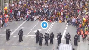 Que todo el mundo vea estas imágenes. Gente sentada, quieta. La policía inicia la carga. Barcelona está...