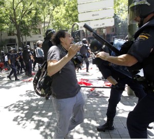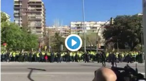 Centenares de estibadores, unos 270 según los Mossos d’Esquadra, unos 500 según los manifestantes, protestan frente al...