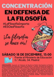 La Plataforma en Defensa de la Filosofía, junto con otras organizaciones y asociaciones, se concentrará este sábado...