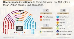 El líder del PSOE, Pedro Sánchez, no ha conseguido hoy la mayoría absoluta del Congreso requerida para...