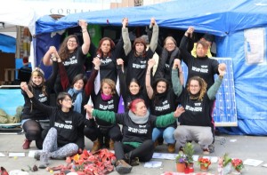 Las mujeres que llevaban a cabo una huelga de hambre en la Puerta del Sol de Madrid...